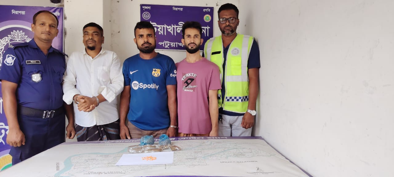 পটুয়াখালী সদর থানার পুলিশের বিশেষ অভিযানে ইয়াবা ও গাঁজাসহ তিন মাদক ব্য...